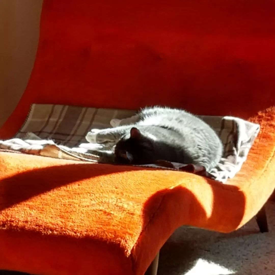 Toasty, part 3. It's ba Sunny Sunday here, currently 51 deg (10.5 C). The snow is melting and Ziggy is so toasty her fur is almost hot to the touch.