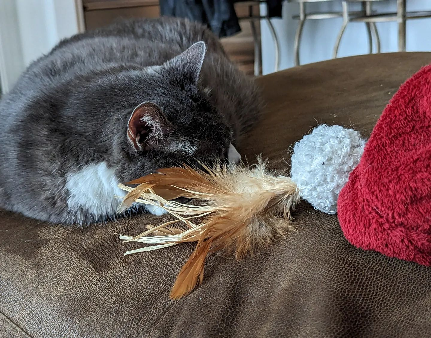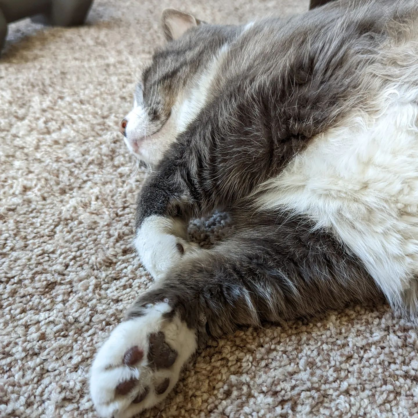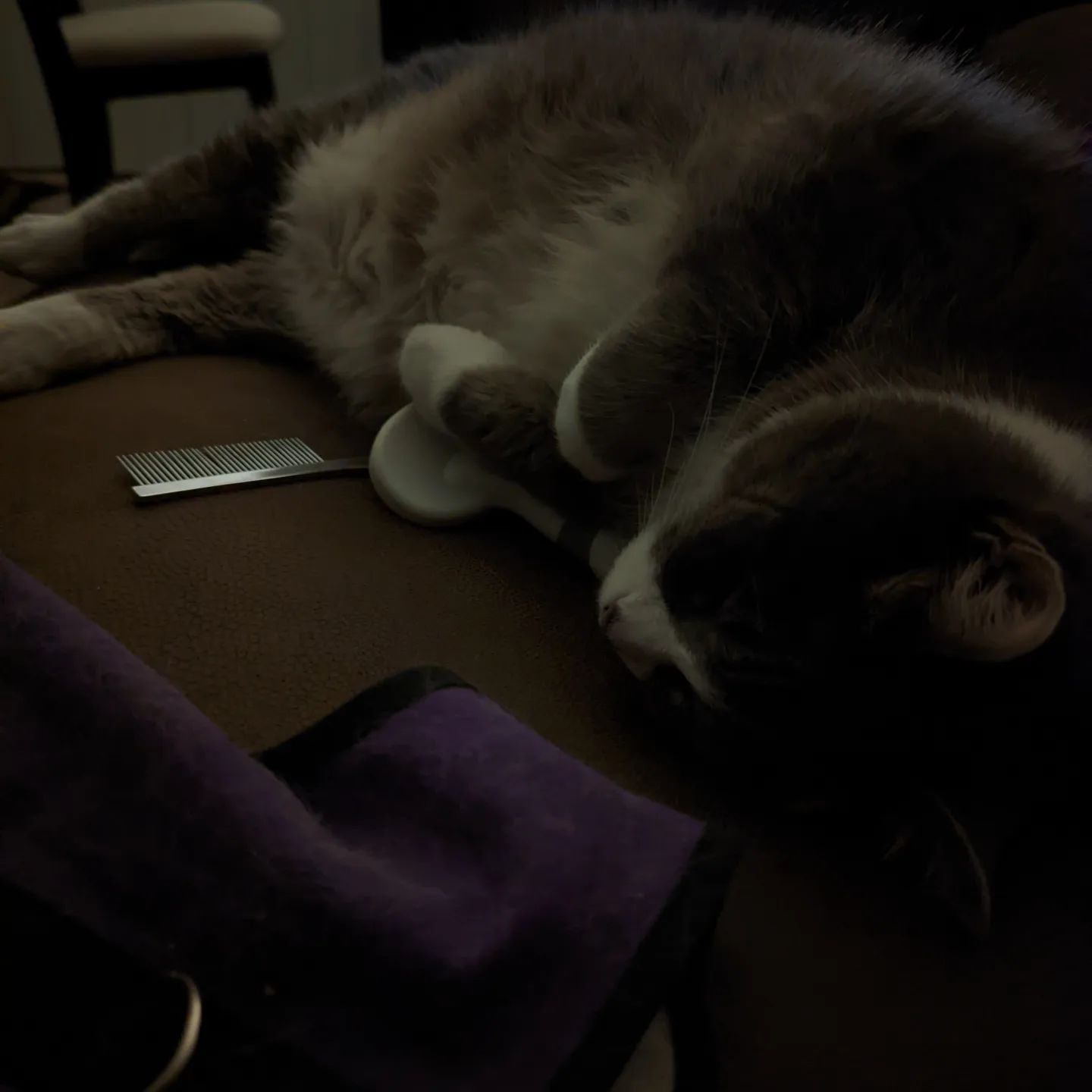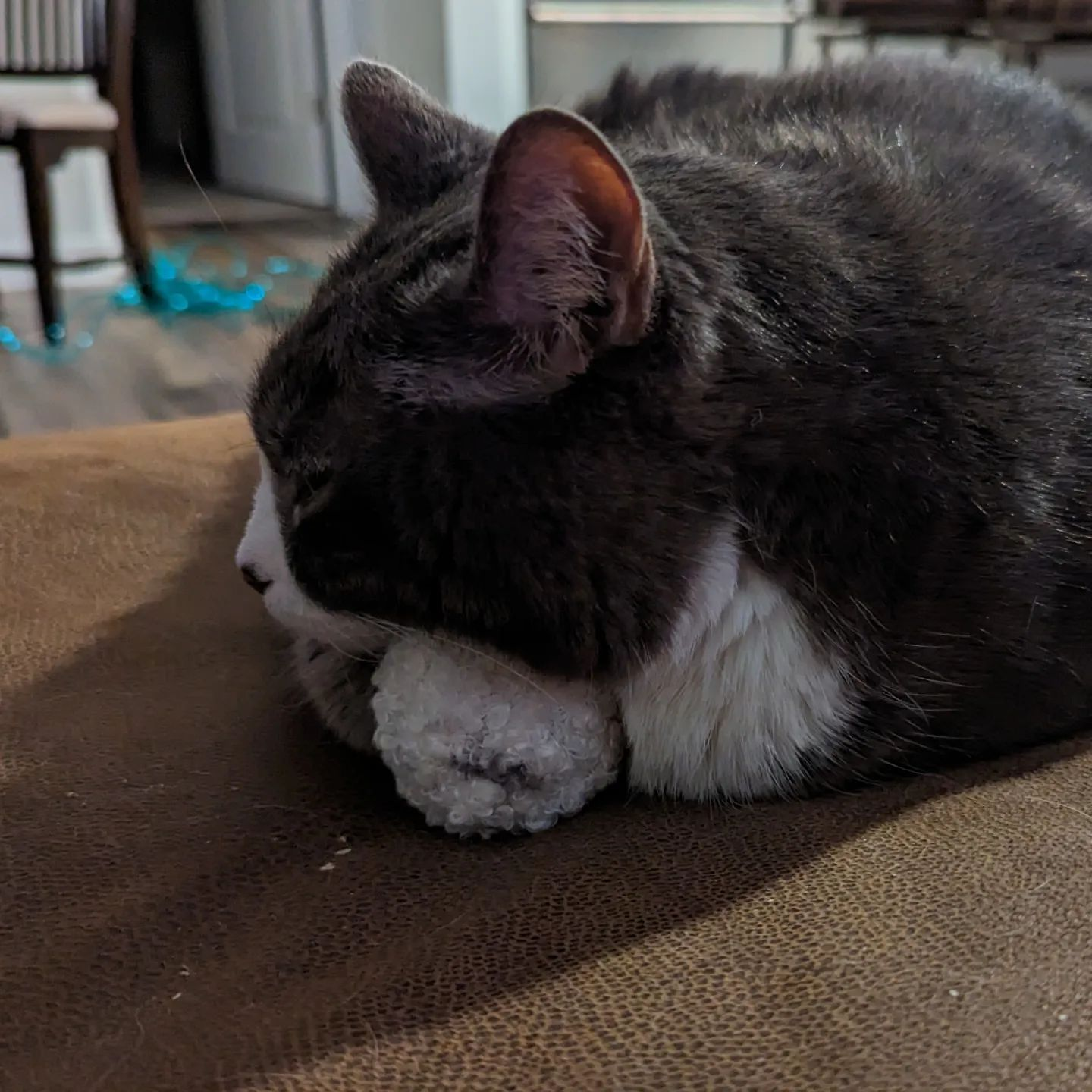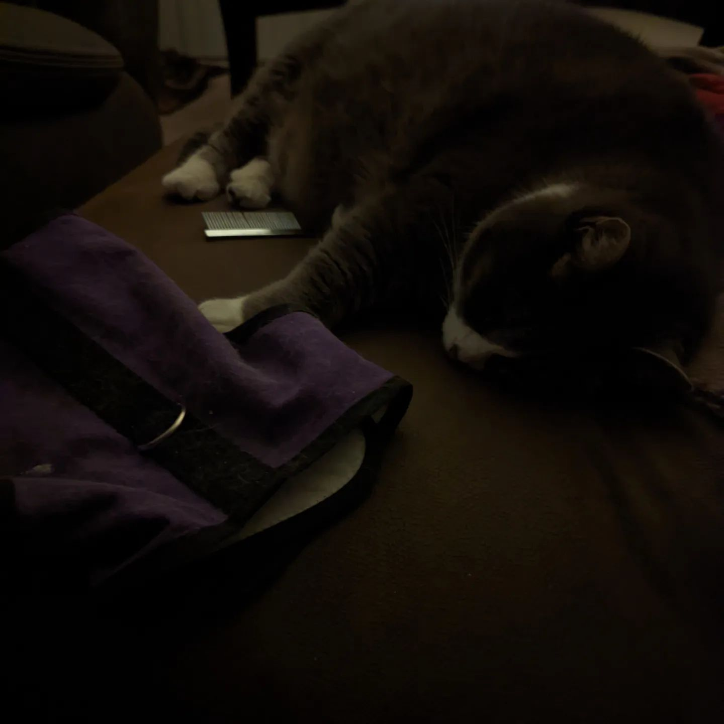 I touched the puff. I was reminded the puff is not mine. Ziggy is sleep-guarding her puff.