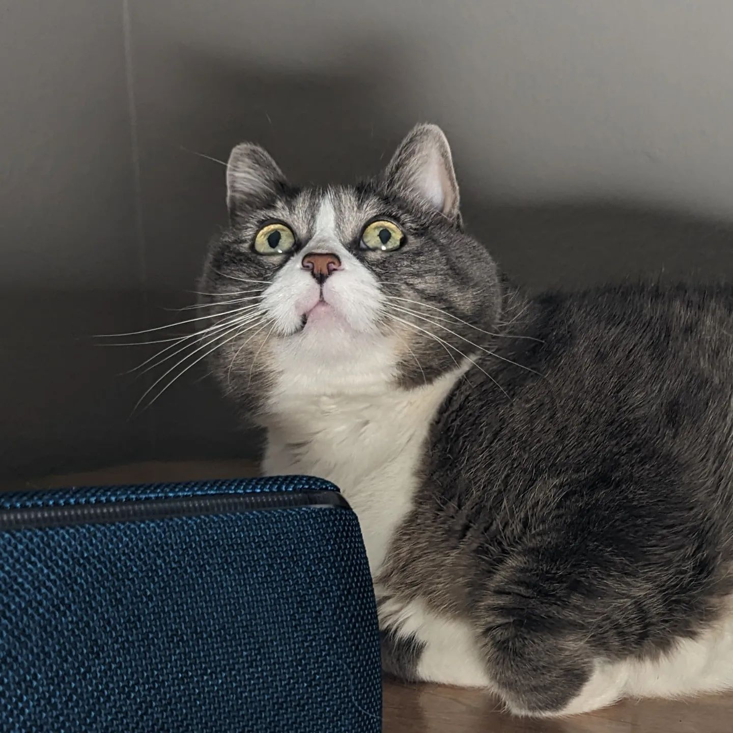 Share more? ....this is what Ziggy does when she has had a little bit from my dinner and wants more . ??