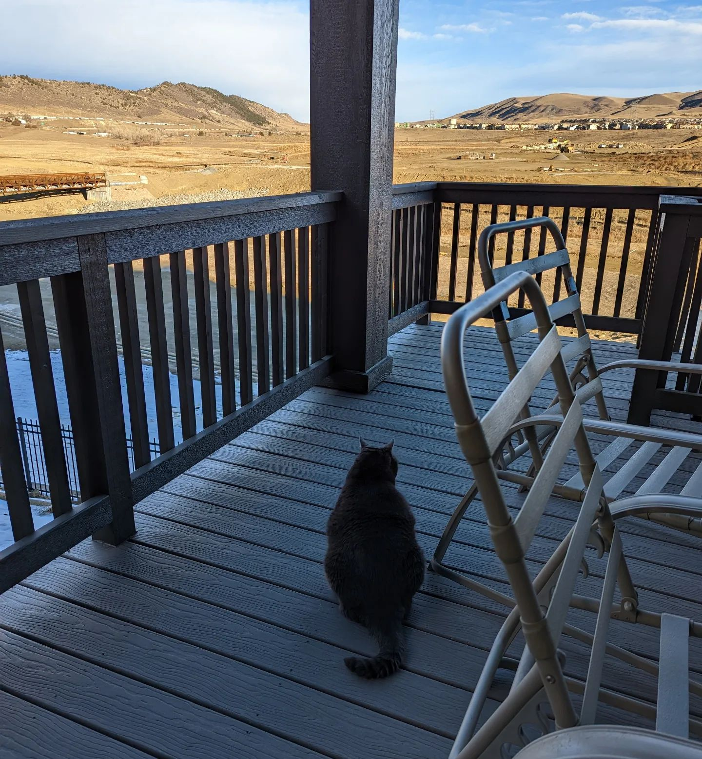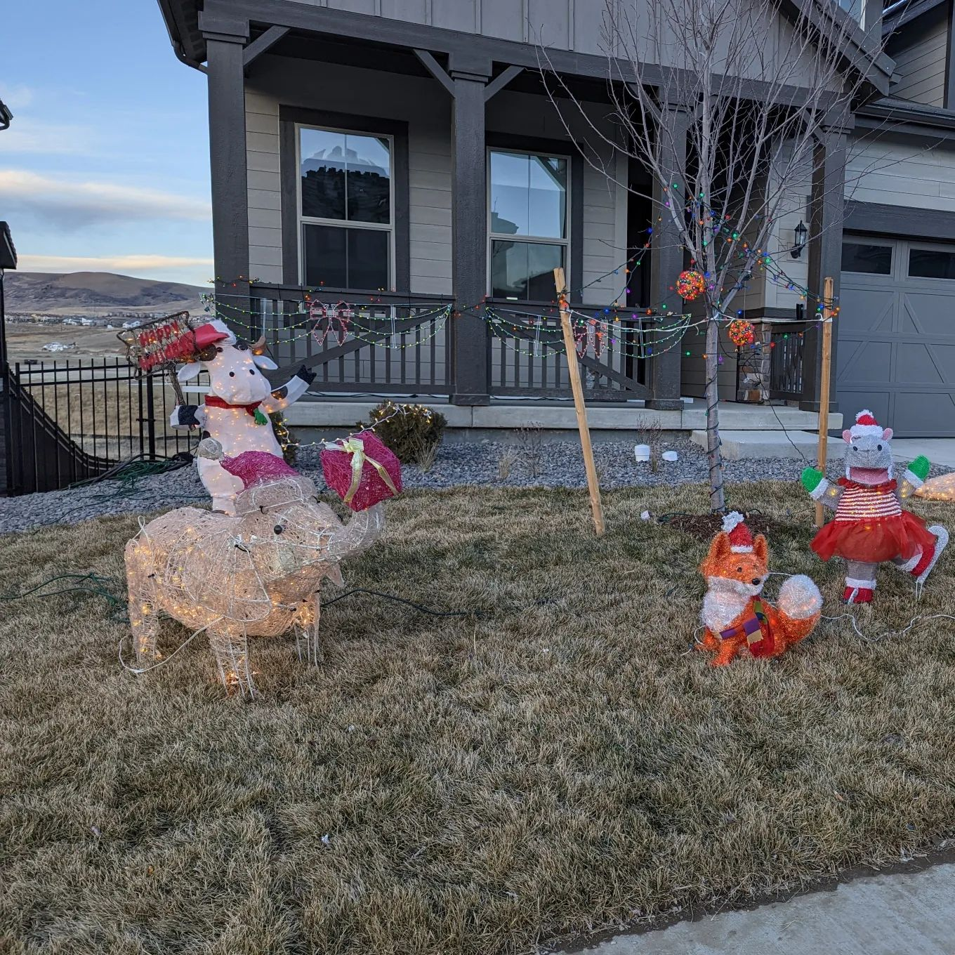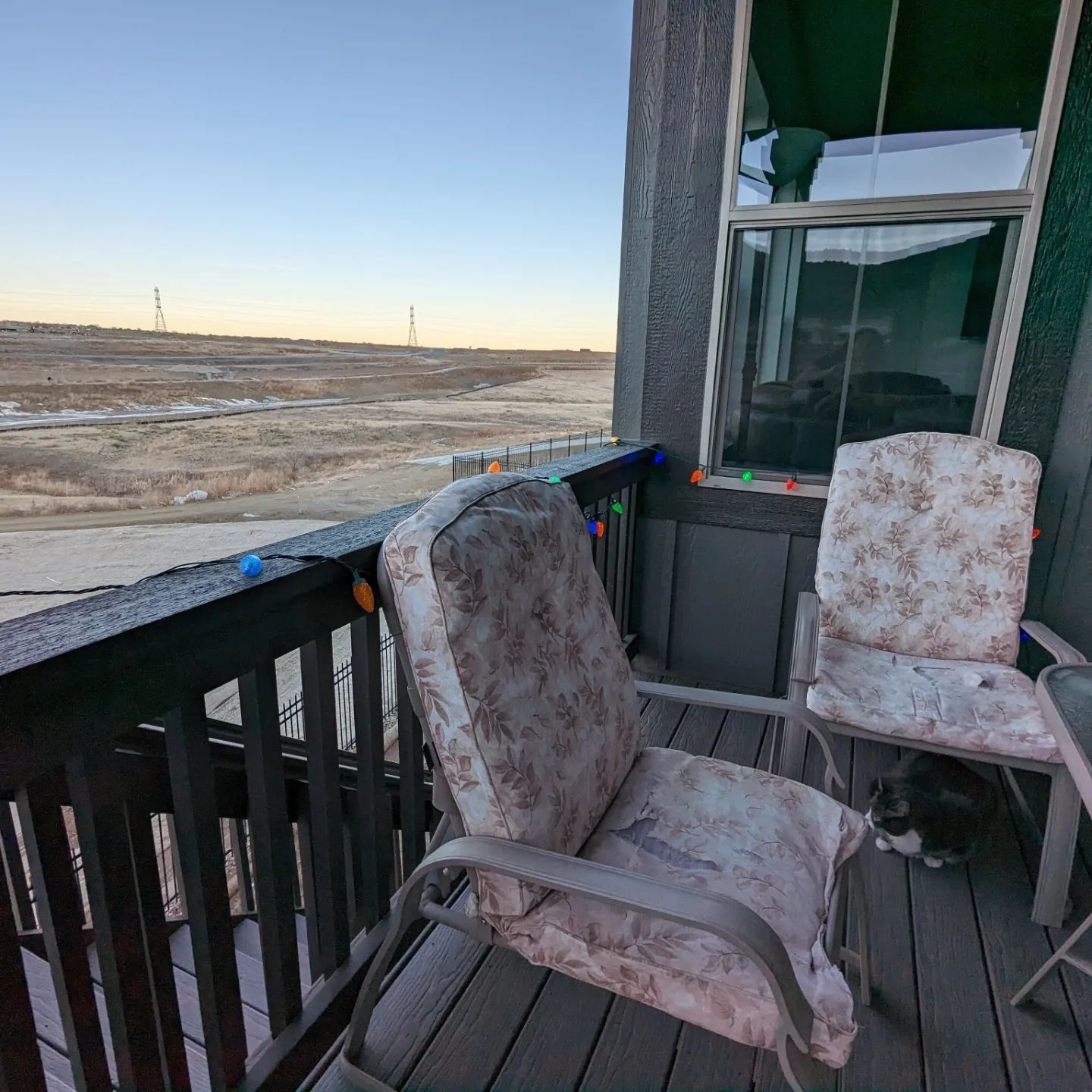I haven't been sure what to do with the back deck decorating-wise due to the high winds this month, but I did zip tie 2 strings of lights to the railing. They passed inspection.