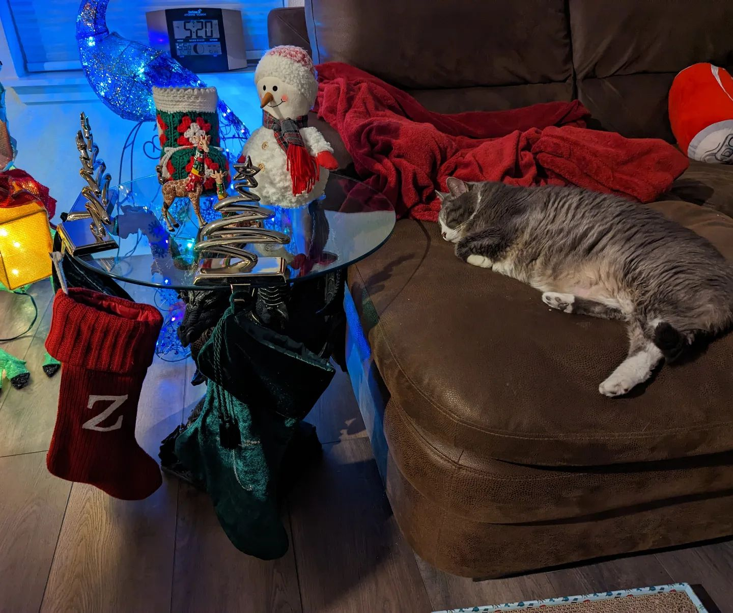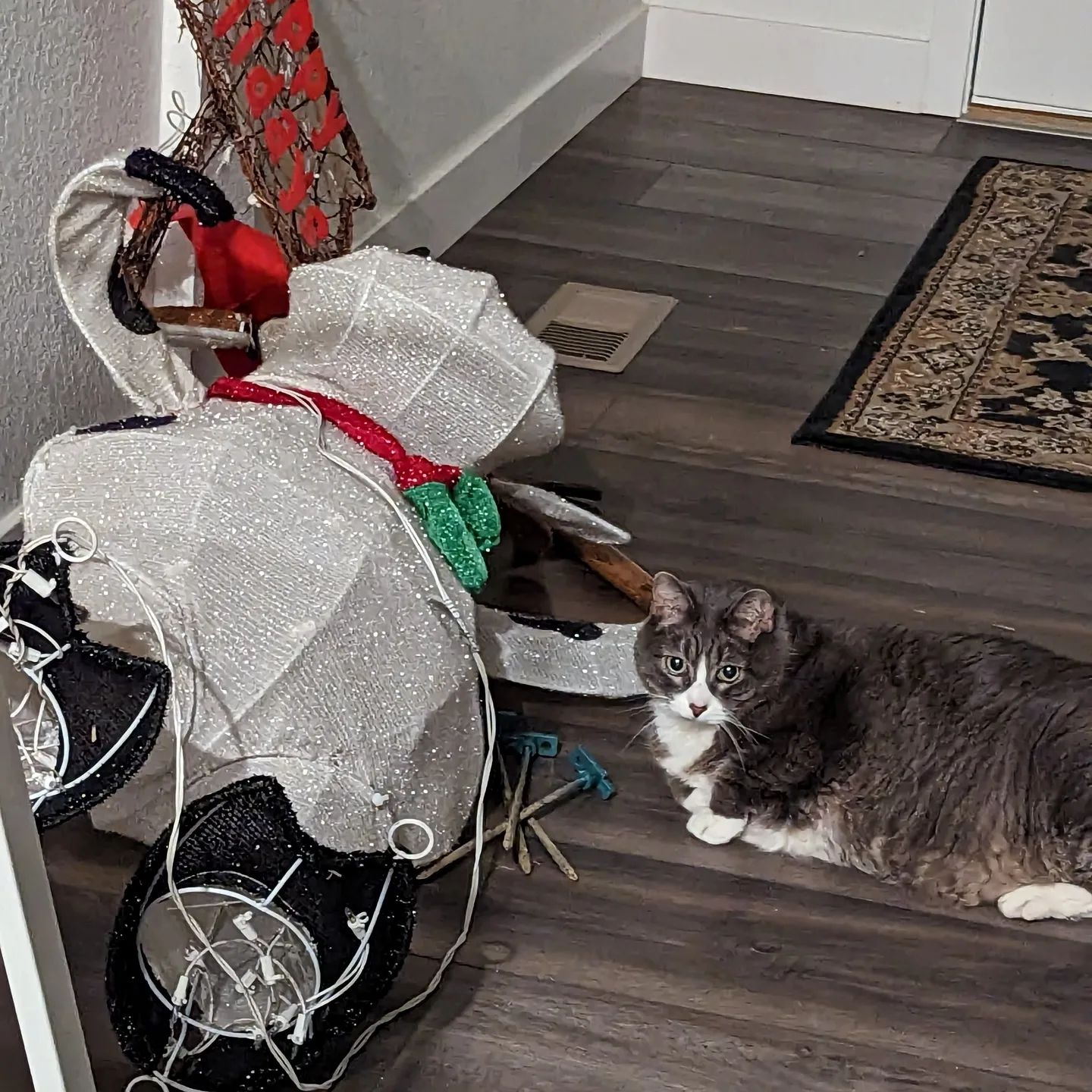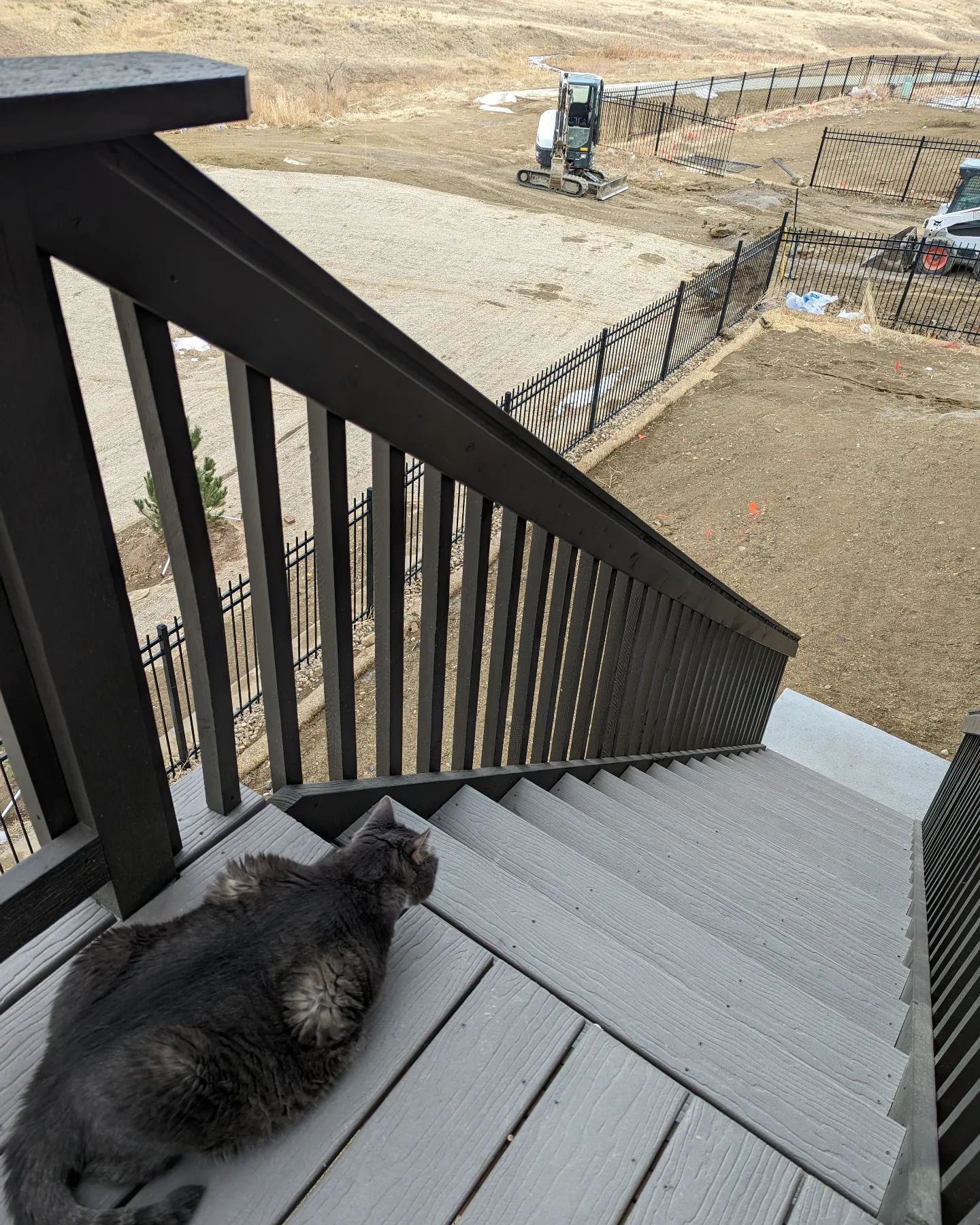 I haven't been sure what to do with the back deck decorating-wise due to the high winds this month, but I did zip tie 2 strings of lights to the railing. They passed inspection.