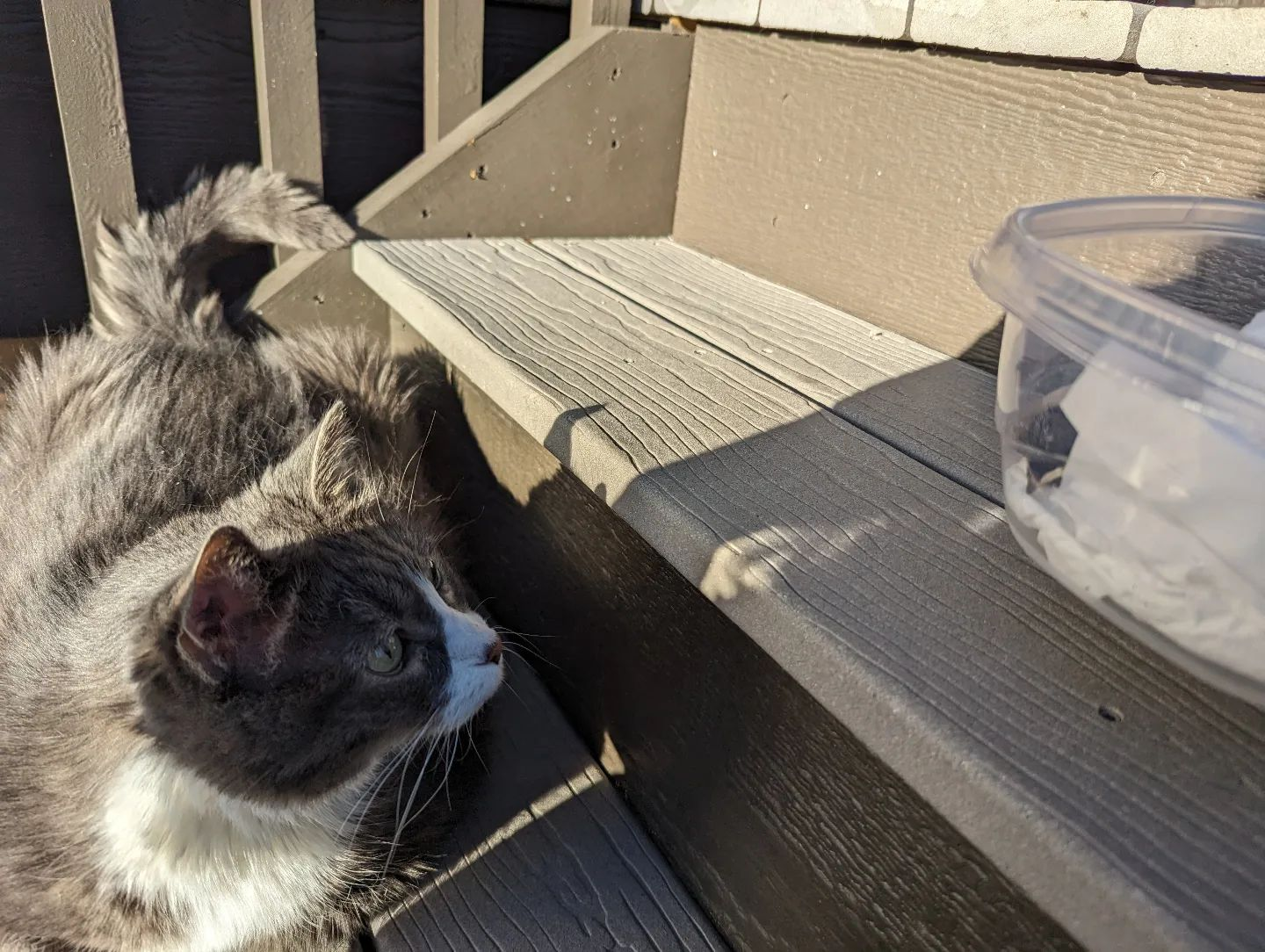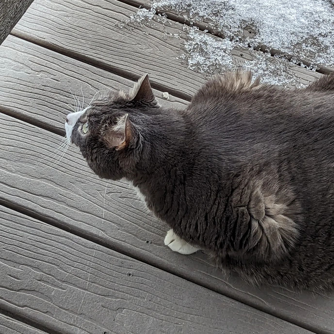 Happy Won't Look Whisker Wednesday! Ziggy was on guard duty this morning. Very serious business. Swipe for more pictures.