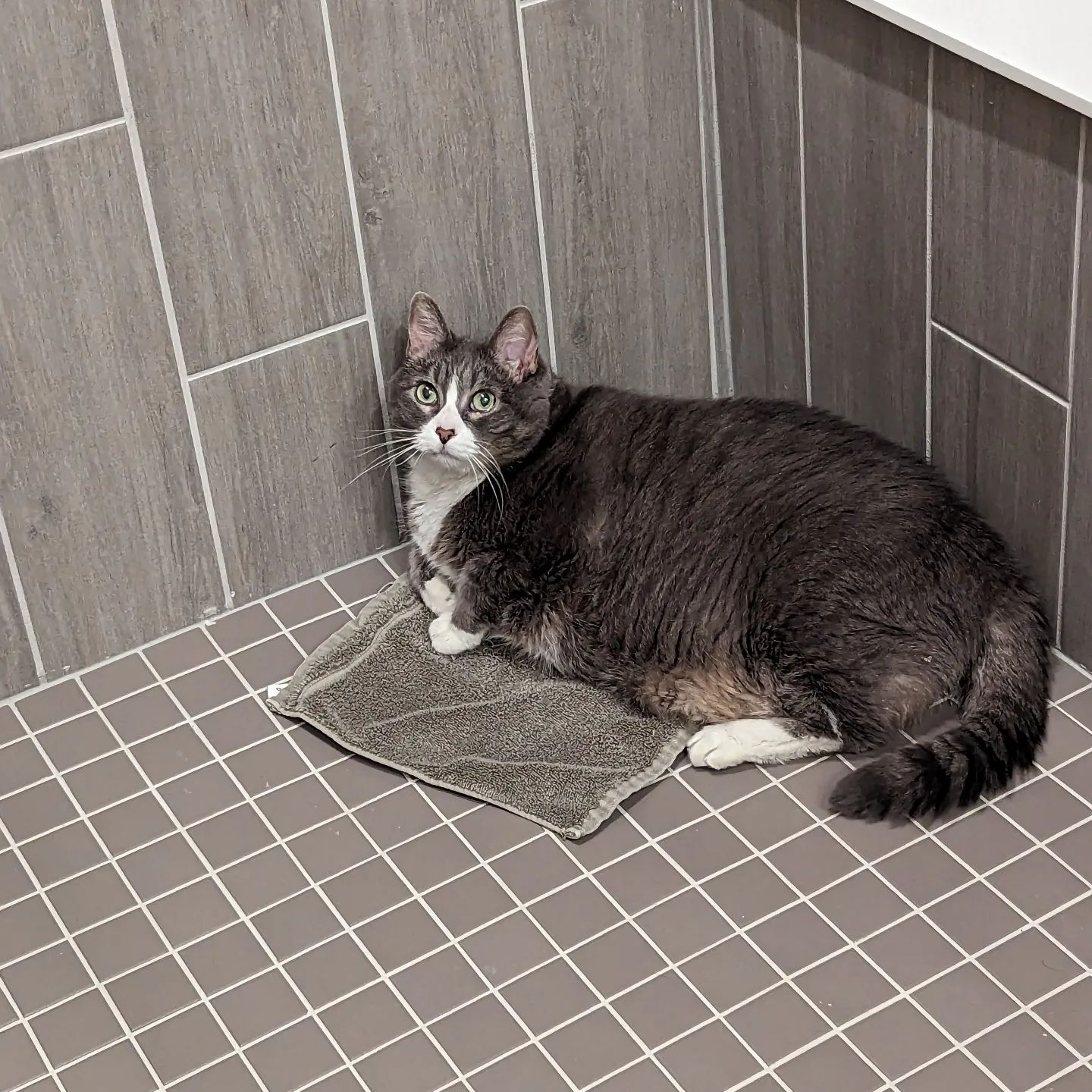At the ER vet with Ziggy this morning. She hasn't been feeling all week, with substantially reduced appetite and water intake. Hoping she is just dehydrated from a bad cold, wanted to get it dealt with quickly due to her age and kidney problems. She's still feisty, though! We very quickly went from "Ziggy is so cute!" to a delivery of Ziggy wrapped up in the towel from her carrier after they moved me to a private room. Vitals were good, no fever. Waiting for the vet shift change to complete.