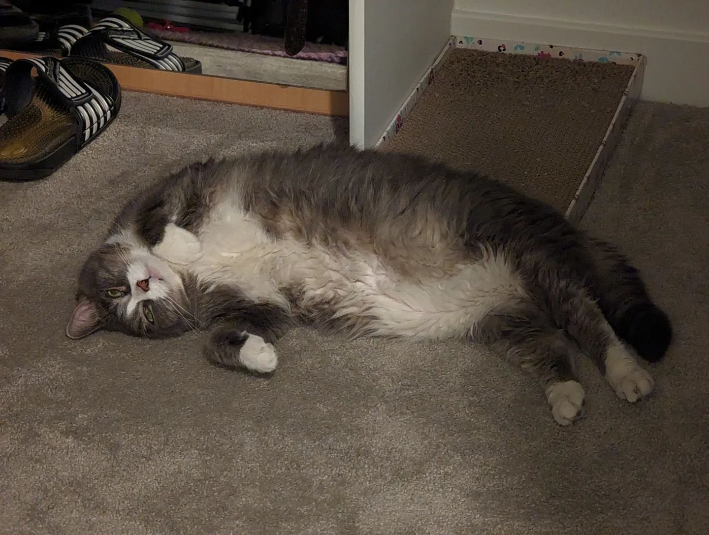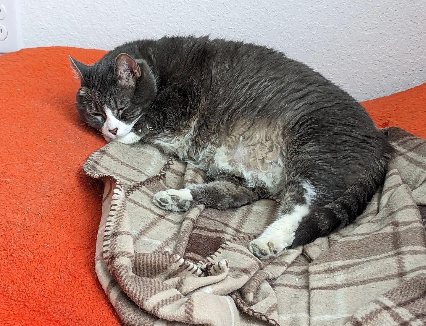 The cat loaf says she is done with this place. Urine and blood work looks good for a cat her age except blood sugar and dehydration. Blood sugar is in the same range as it has been for the last year and a half.