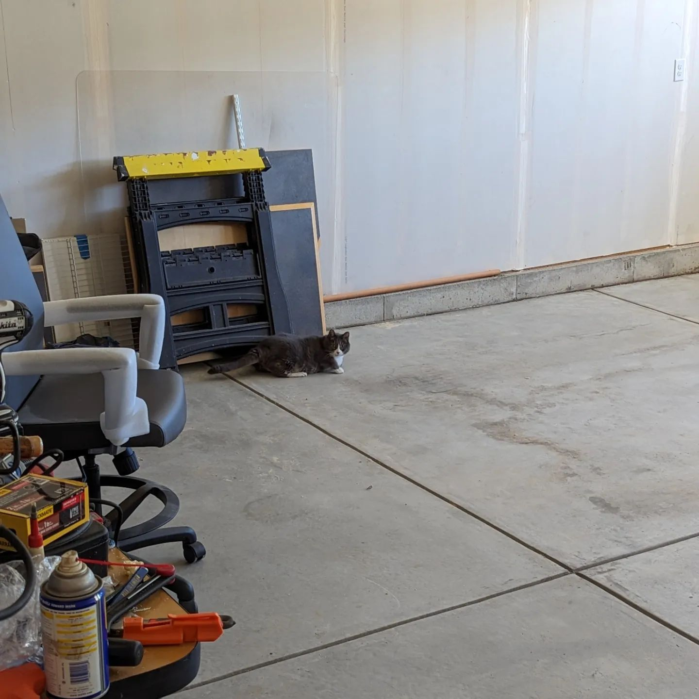 Garage time... Ziggy has been convinced there is something of interest under my car