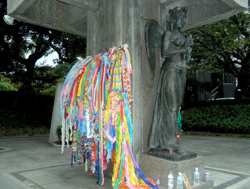 See the Wikipedia entry for this and more information.Sadako Sasaki (Japanese: Sasaki Sadako, January 7, 1943 - October 25, 1955) was a Japanese girl who lived near Misasa Bridge in Hiroshima, Japan. She was only two years old when the atomic bomb was dropped on Hiroshima on August 6, 1945. At the moment of explosion she was at her home, about 1 mile from ground zero. As she grew up, Sadako was a strong, courageous and athletic girl. In 1954, at age eleven, while training for a big race, she became dizzy and fell to the ground. Sadako was diagnosed with leukemia, the "atom bomb disease".